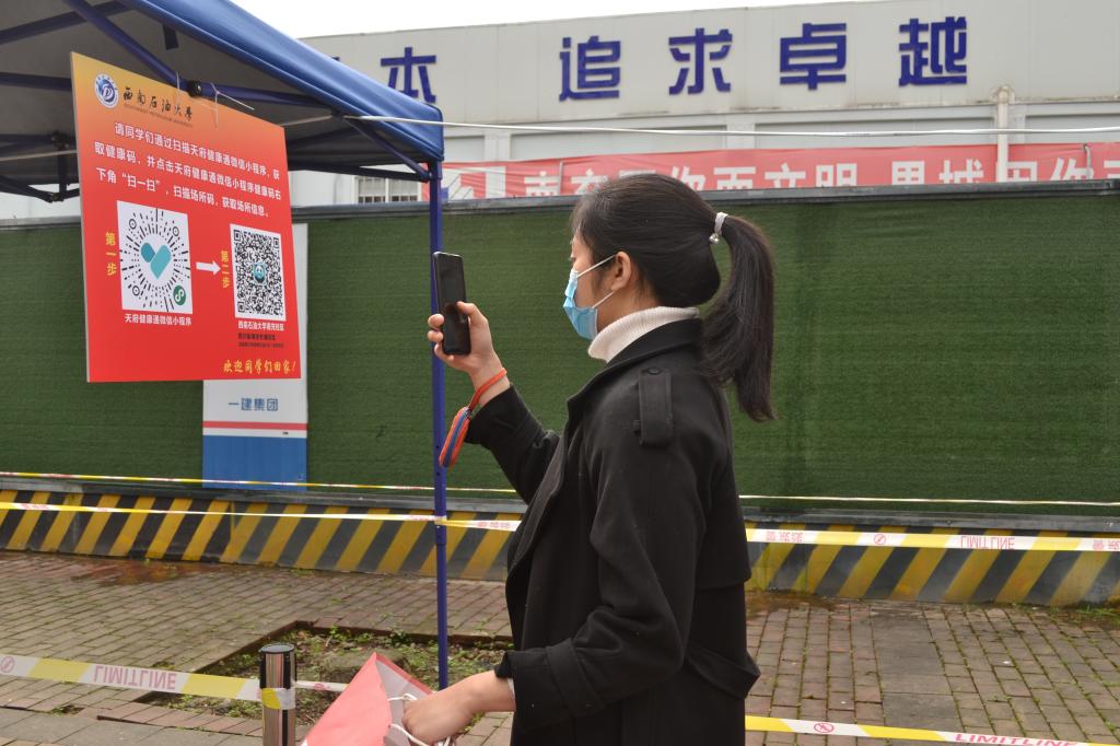返校学生在学生返校专门通道内申领天府健康码和到校码