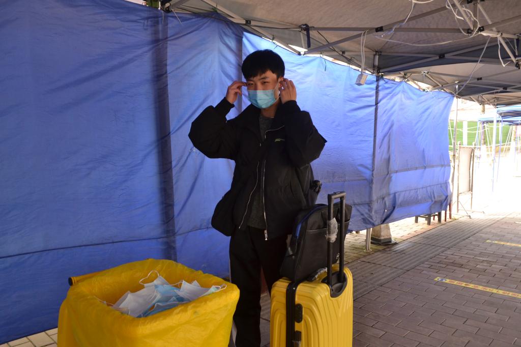 返校当天,学生乘坐交通工具到达西大门后,有序进入学生专用返校通道,自觉保持安全距离。