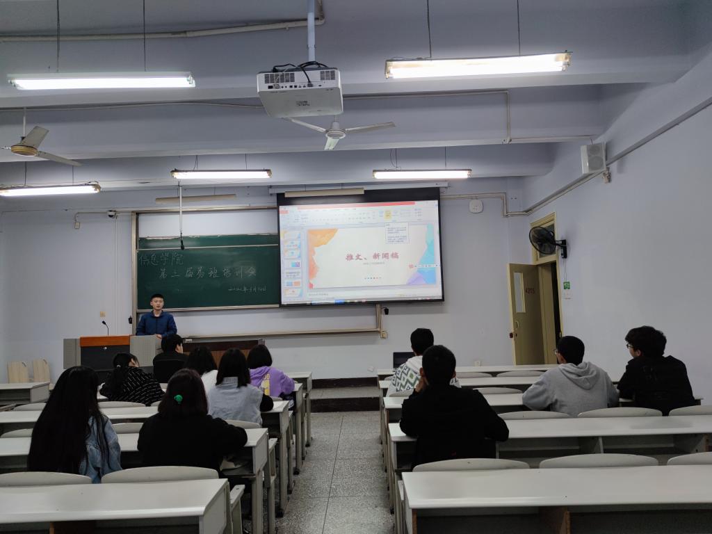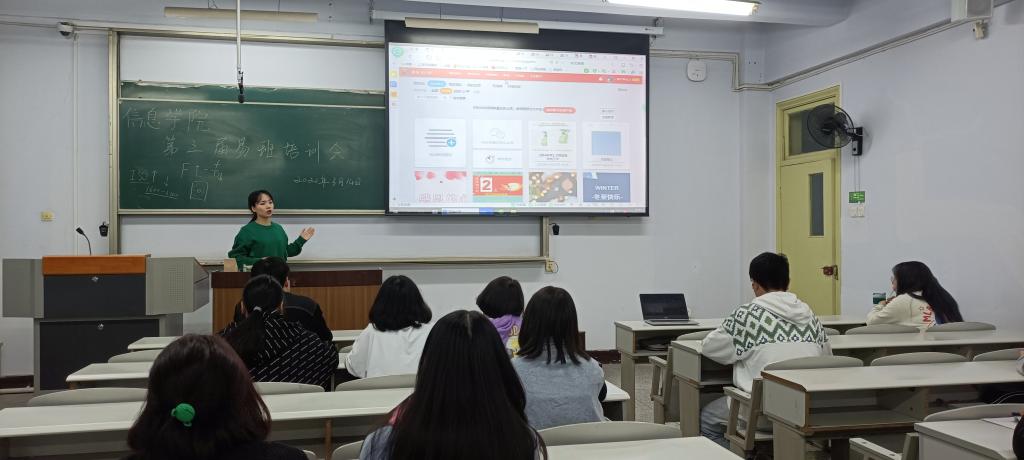 为让学院的宣传工作有序开展,让易班更能成为展现学院学子风采,传播学院正能量的平台,3月14日晚7:00,信息学院第三届易班全体成员在4205教室召开培训会。本次会议由信息学院第二届易班站长梁文江主持。信息学院易班指导教师薛静,南充校区易班负责人许兰、唐柳,信息学院第三届易班全体成员参与了此次会议。