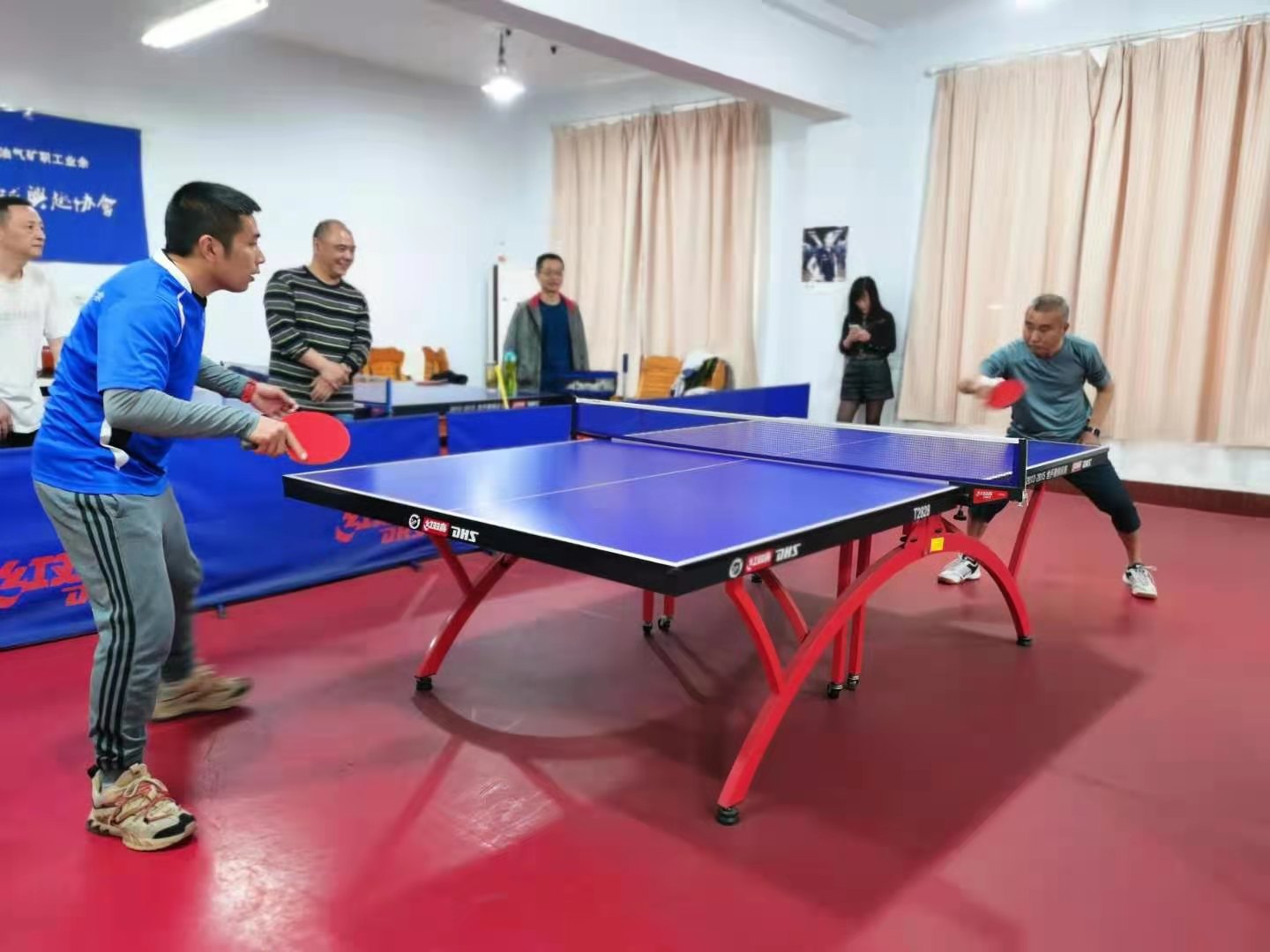 本次比赛分为团体赛和交流赛两种类型,团体赛由双方各出7名选手,捉对厮杀,交流赛由选手自愿配对切磋技艺,比赛结果不计入团体成绩。参赛选手势均力敌,比赛异常精彩和激烈,虽然大家都是业余选手,但在比赛时都能奋力拼搏,赛出了士气和风格。直拍、横拍、扣球、弧圈球等都得到了一一体现,比赛中不时传来兴奋的“好球”声和热烈的喝彩声。历经2个半小时的激战,校区乒乓球协会以3:4惜败西油司南充联队。
