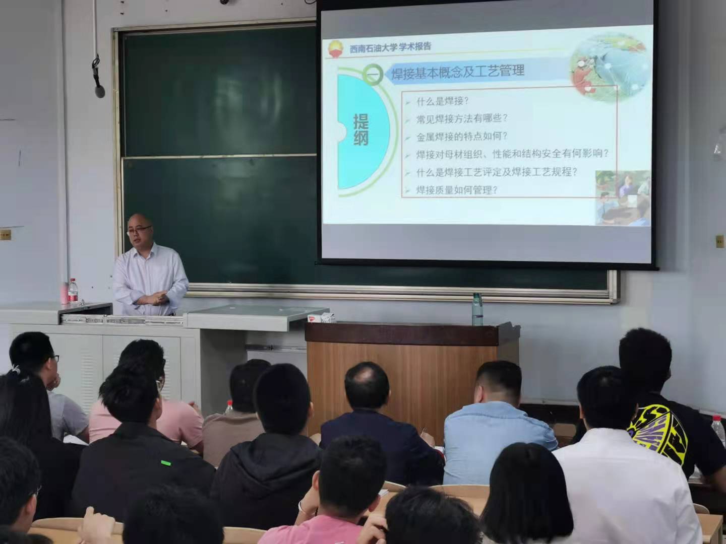 何小东以西气东输、中俄原油管道等工程为背景,分别从焊接基本概念及工艺管理、油气管道制管焊接方法及工艺、油气管道焊接问题及工艺优化、油气长输管道焊接检验等几个方面向大家介绍了焊接技术及检验在油气管道工程中的应用及重要地位。同时,何教授还对油气管道工程中由于焊接原因所引发的一些事故进行了分析,让大家明白了焊接是工程质量的重要保障,同时也让大家意识到焊接工程师所肩负的重要责任。(工程学院 谢芋江)