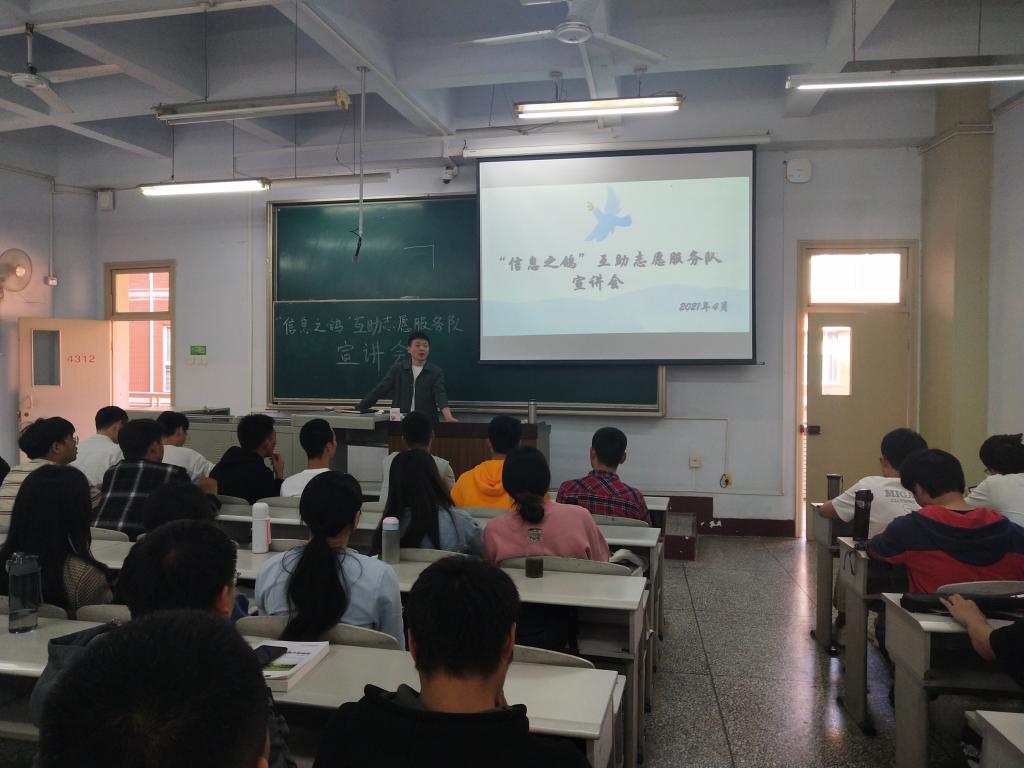 为帮助家庭经济困难学生进一步提升综合素质,结合自身的专业能力实际开展志愿服务,4月30日,信息学院“信息之鸽”互助志愿服务队在4312教室举行志愿者招募宣讲会。宣讲会由信息学院辅导员唐明森主持,学院共计120余名学生参与了此次活动。