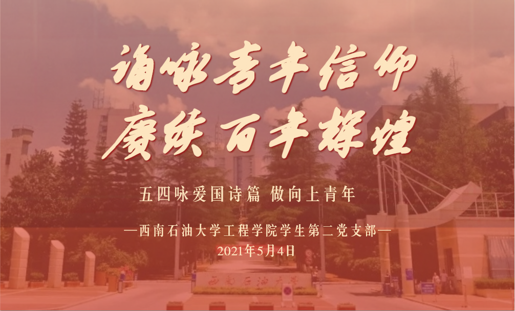 为纪念五四爱国运动102周年,弘扬五四精神,扎实推进党史学习教育。在五四青年节到来之际,工程学院学生第二党支部开展“诗诵青年信仰,赓续百年辉煌”诗词朗诵主题党日活动,活动通过“三个一”的方式开展,即参观一次红色革命教育基地、朗诵一首颂党诗词、录制一段主题视频。
