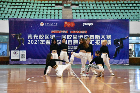 赛前,校区运动舞蹈队表演了曾获全国青少年运动舞蹈艺术教育成果展演金奖舞蹈《This is me》。(大学生全媒体中心/廖美 熊正志 杨欣雨 苏端俊 张馨玥)