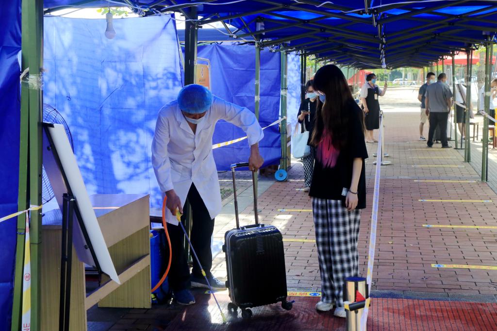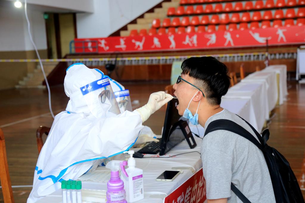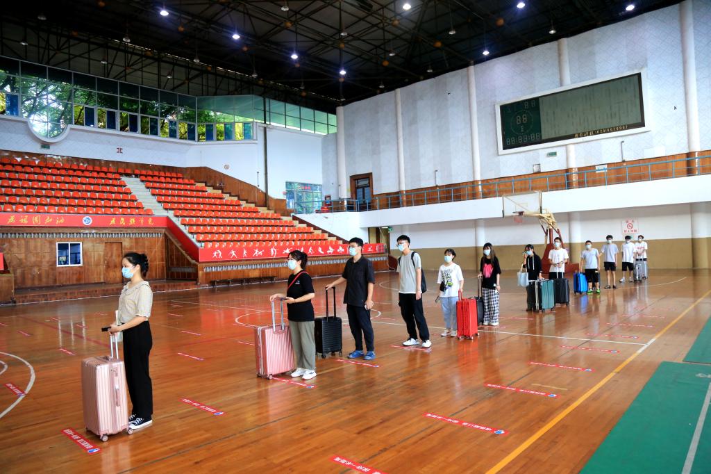 入校查验合格的学生进入校区体育馆核酸检测待检区。工作人员指引受检人员进入待检区,每位受检人员需保持1米距离等待。登记人员现场采集受检者信息,采样人员为登记好信息的受检者进行采样。采样完成的学生在出口处进行手部消毒并保持佩戴口罩,直接前往宿舍,不得离开,等待核酸检测结果,期间有不适第一时间报告。同时,专车专人转运采样标本到检测实验室,并对现场及时进行环境消杀。核酸检测结果出来后,校区将第一时间通知学生在天府健康通上查询核酸检测结果。