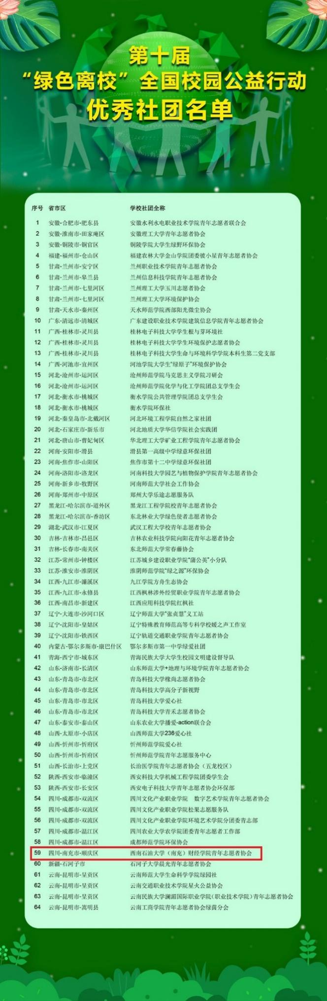 第十届“绿色离校”全国校园公益行动优秀社团名单