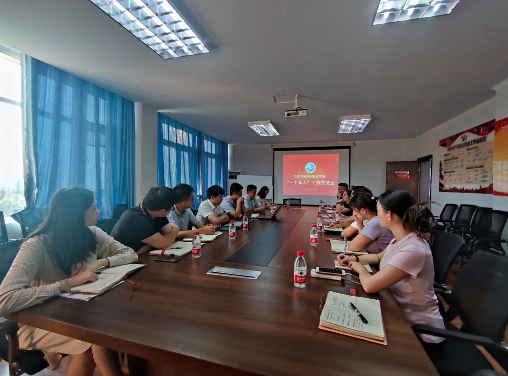 为全面贯彻《西南石油大学“三全育人”综合改革实施方案》的要求,推进信息学院立德树人工作走深走实,加快学院“三全育人”体系建设,9月29日下午,信息学院邀请外国语学院开展“三全育人”工作交流会。外国语学院党委副书记孙德刚、辅导员罗文双,信息学院党总支副书记梁军刚,学院团总支副书记、学生工作办公室副主任胡丹及全体辅导员参与了此次交流会。