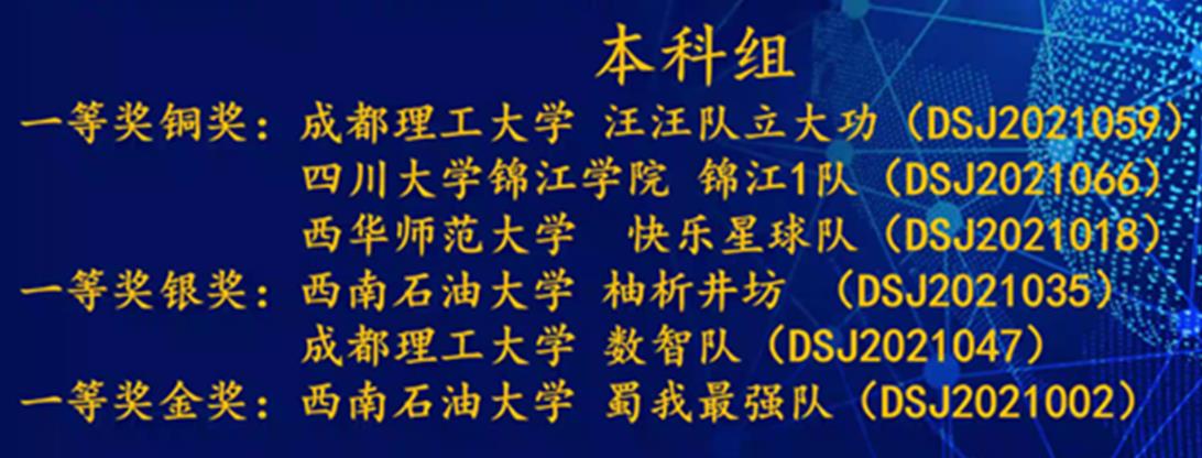 大赛由四川省教育厅主办,成都理工大学承办,于今年8月启动,省内高校的75支团队参赛。按照参赛队伍数的10%、20%、30%设置一等奖8项、二等奖15项、三等奖23项。