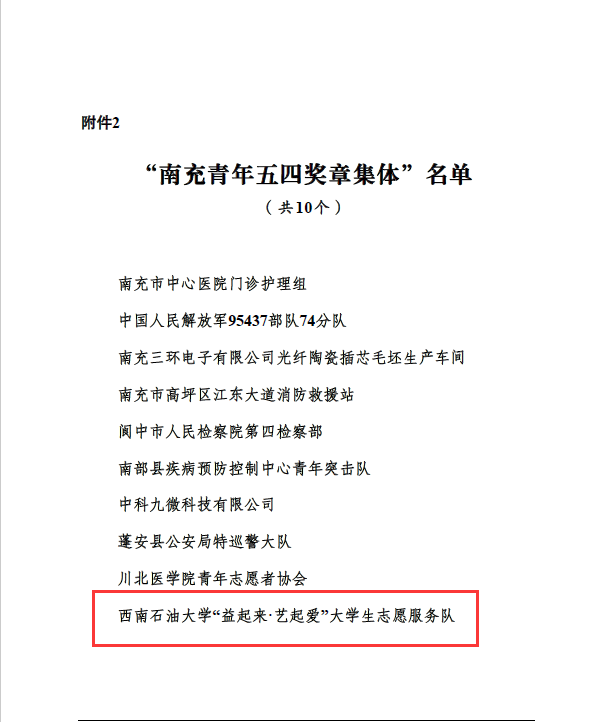 “南充青年五四奖章集体”名单