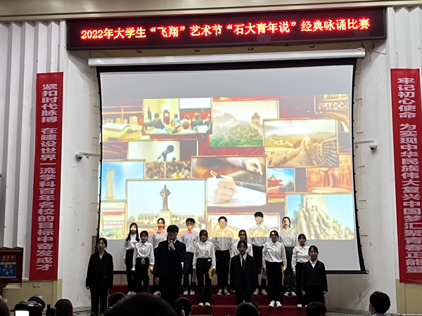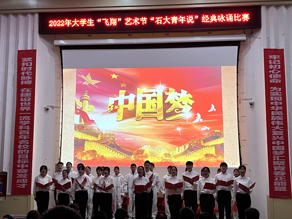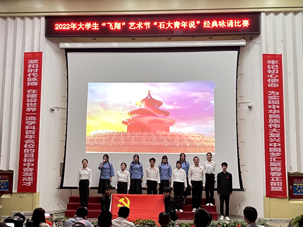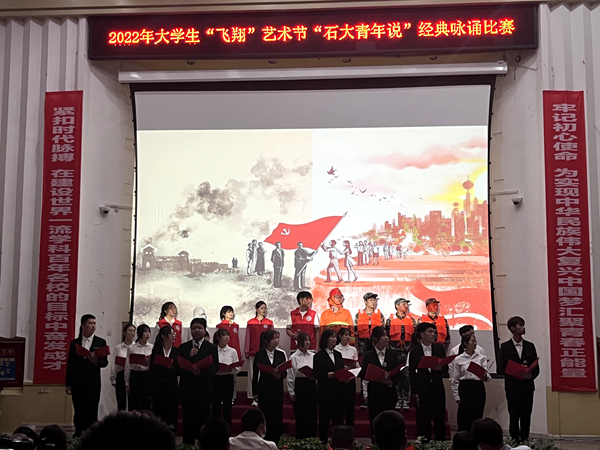 各学院分别推荐了2支队伍参加比赛。其中,工程学院选送的《请党放心,强国有我》充分展现了中国共产党筚路蓝缕、奠基立业的百年辉煌历程,号召青年学子在新时代要勇担使命,为实现中华民族伟大复兴而不懈奋斗。信息学院选送的《百年风云且翻涌,革命自有后来人》展现了中国共产党领导的人民军队用生命与鲜血夺取革命伟大胜利的感人故事。财经学院选送的《百年潮已涌,青春起而行》以十月革命为背景,展现了亿万中国人民坚定革命理想,前赴后继、艰苦奋斗,在党的坚强领导下取得的一项又一项伟大成就。各参赛队伍紧扣比赛主题,采用多种艺术表现形式,讲述了红色故事,表达了石大学子坚定理想信念、传承红色基因的呼声,展现了石大学子积极向上、有理想、有担当的精神风貌。