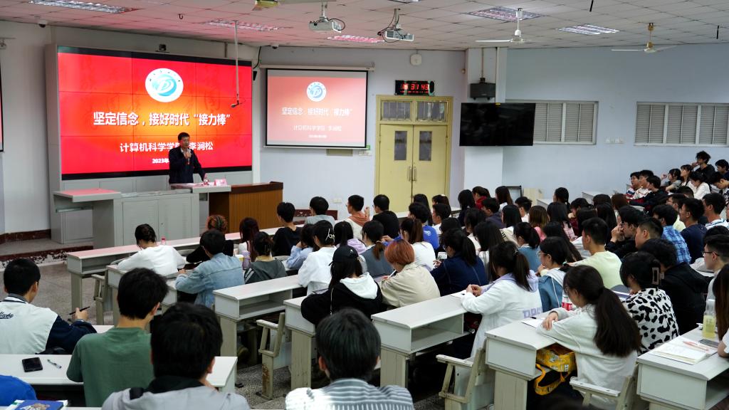 4月10日,计算机科学学院党委书记李涧松给学院南充校区学生党员、入党积极分子、学生骨干讲授了题为《坚定信念 接好时代“接力棒”》的党课。院长王杨,院党委副书记、纪委书记刘翔,副院长胥林,团委、学生工作办公室有关同志聆听了此次党课。