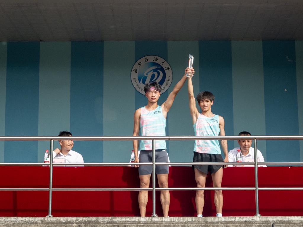 “最佳男运动员”:财务管理专业学生杨昊霖、刘心远领奖场景