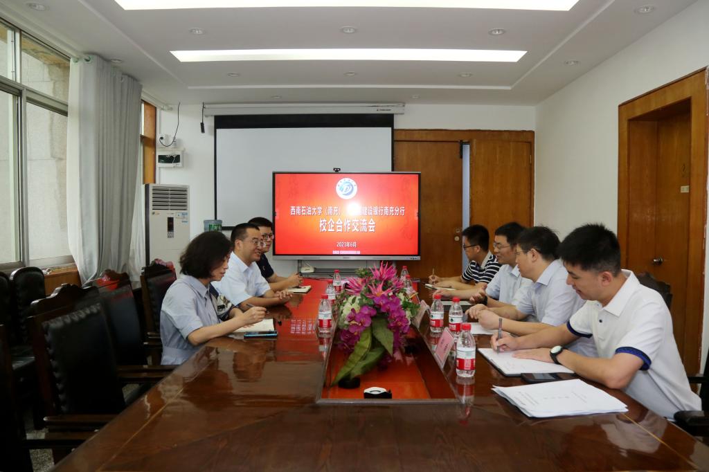 6月18日上午,中国建设银行南充分行副行长何健一行到访南充校区,与南充校区副校长谌贵辉座谈交流。