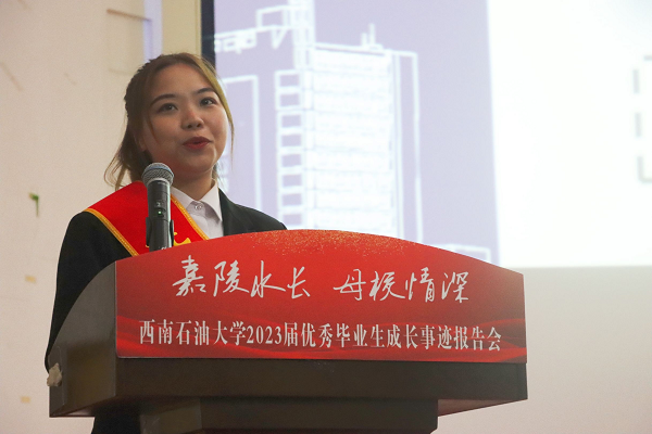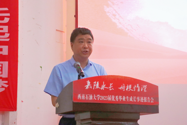 6月15日上午,南充校区举行“嘉陵水长 母校情深”2023届优秀学生成长事迹报告会,8名优秀学生代表受邀分享他们的“追梦”故事。学生发展部(团委)部长郝江岭,机电工程学院副院长蔡灿,新能源与材料学院副院长周培山,理学院副院长税正伟,经济管理学院副院长彭双出席报告会。