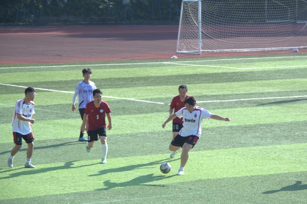 随着一声哨响,教师代表队与毕业生代表队展开激烈角逐。双方队员在绿茵场上奔跑、传球、射门,每一个动作都充满了激情与活力。双方各有优势,毕业生年轻体力好,老师们经验丰富,配合更为默契。比赛过程紧张刺激,气氛热烈,一次次漂亮的带球,一次次精彩的抢断,一次次惊险的扑救,赢得场边观众阵阵掌声。最终,教工队凭借丰富的经验和娴熟配合,以3:2战胜毕业生代表队。