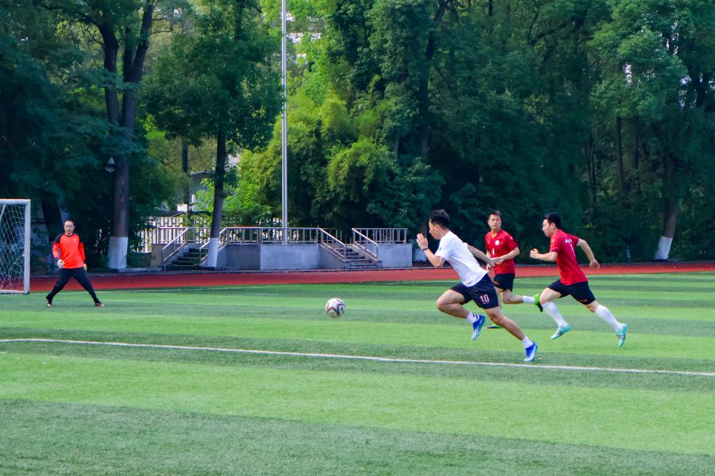 6月13日下午,南充校区在田径运动场举行毕业季师生足球联谊赛。比赛双方队员为各学院毕业生代表和教工足协教师。南充校区副校长覃鸿飞、谌贵辉及相关部门负责人现场观看比赛。