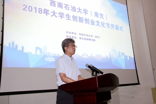 赵刚致欢迎辞并宣布南充校区2018年大学生创新创业文化节开幕。他说,南充校区围绕“建设高水平工科大学,实现再造一所西南石油大学”的目标,始终把创新创业教育工作摆在突出位置,在地方政府的大力支持下,不断加大对经费、人员、场地等方面的建设投入,创新创业工作不断取得新成效。他表示,本届校区大学生创新创业文化节将围绕“以青春之我,创响南充,筑梦未来”主题,以共建南充创客学院为重要抓手,以省人社厅创业指导进校园、龙井创业大讲坛、创新创业项目路演等形式多样的活动为载体,进一步开启南充校区创新创业工作新局面,再次点燃师生员工的创新创业激情。他要求,校区师生要紧跟时代潮流,把握时代机遇,自觉承担起引领科技创新,推动国家进步,促进社会发展,助推南充大城崛起的时代使命。