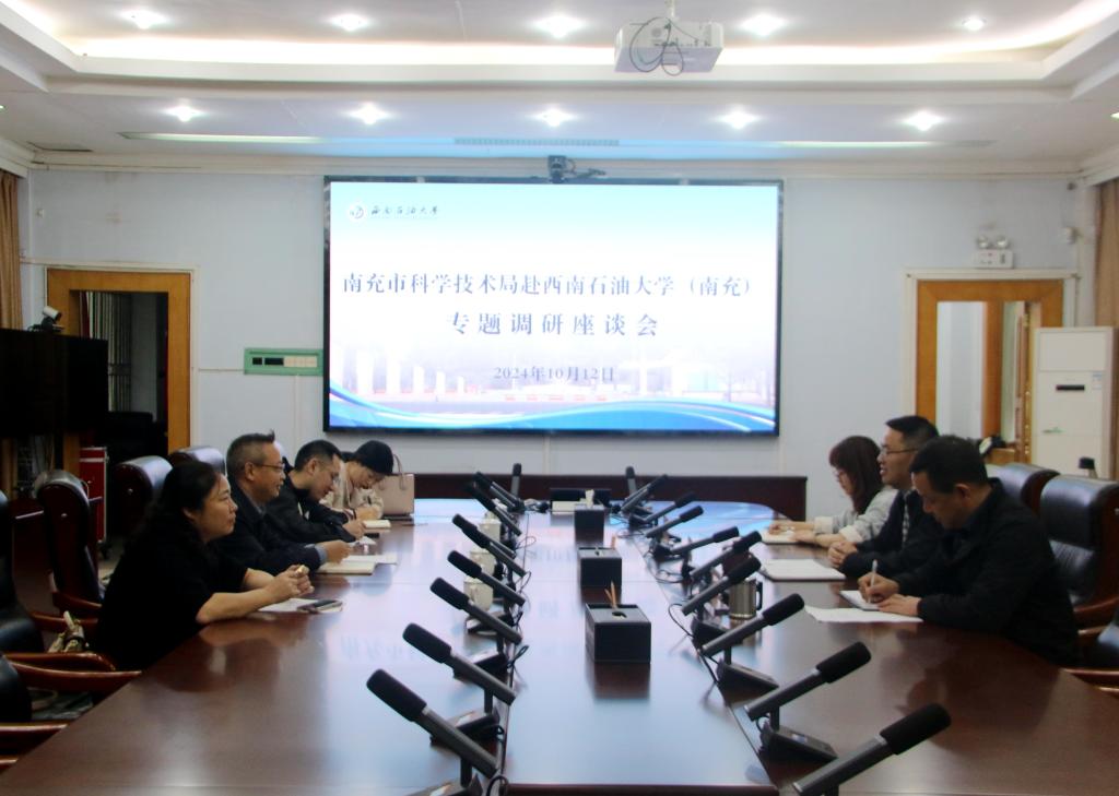 10月12日上午,南充市科技局副局长钟小建到南充校区专题调研科技创新工作,与南充校区副校长谌贵辉座谈交流。