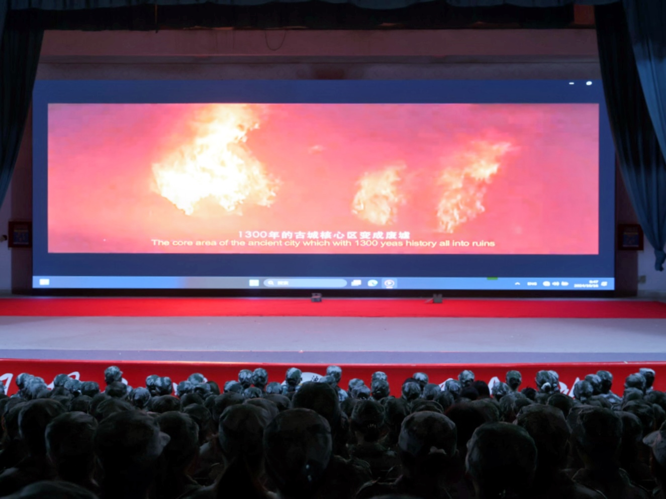 观看消防警示教育片场景