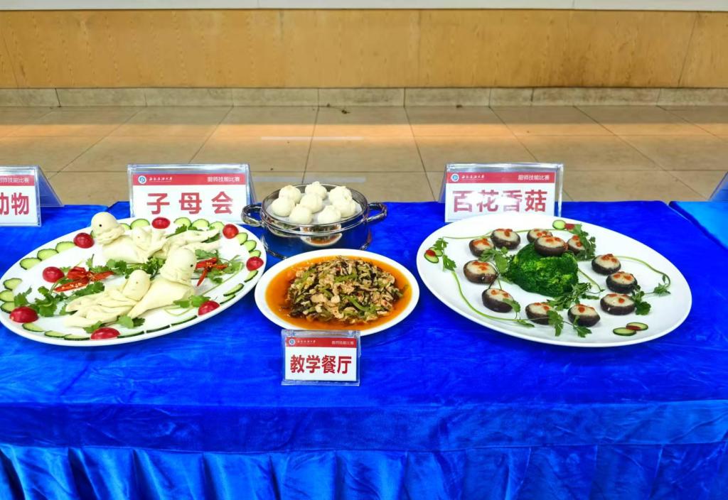 本次比赛共有教学餐厅代表队、龙井雅苑等4支代表队,设有食品安全理论知识竞赛、红案(烹饪菜肴)、白案(面点制作)和刀工较量四个比赛环节。参赛选手们严格遵守比赛规则,操作规范,穿戴整齐洁净的厨师服,精神饱满,充分展示了各自的理论知识和烹饪技艺。