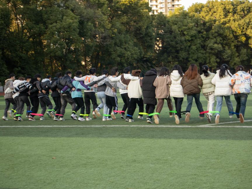 11月28日,学生二十人二十一足比赛在田径运动场举行。比赛以校内各专业为单位组队参赛,每个专业派出一支由二十人组成的队伍,出场顺序通过抽签决定。绿茵场上,参赛选手们排列整齐。随着裁判员的一声哨响,各队队员绑腿齐步,迅速冲出起跑线,场面紧张激烈。参赛选手们奋力拼搏,展现出惊人的团队协作能力和顽强的拼搏精神。参赛队伍间竞争激烈,有的步伐一致,形如一人;有的则在途中遇到绑带松动或摔倒的困难,但选手们都会迅速调整状态,相互扶持,继续向前。经过紧张角逐,材料化学专业代表队以13.5秒的成绩脱颖而出,荣获冠军,焊接技术与工程专业代表队以14.3秒的成绩获得第二名,数字媒体技术专业代表队以14.32秒的成绩获得第三名,建筑环境与能源应用工程专业代表队、光电信息科学与工程专业代表队、能源与环境系统工程专业代表队分别获得第四名、第五名、第六名。
