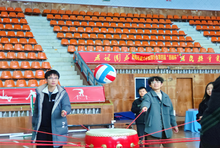 12月13日中午,学生同心鼓比赛在体育馆成功举行,共有18支来自不同专业的队伍参赛。比赛规则是每队10人共同拉着同一面鼓,在规定时间内比拼颠球数量。随着裁判员的口号声响起,比赛正式开始。有的队伍默契无间,队员们的动作行云流水,鼓声富有韵律声;有的队伍则稍显生疏,导致颠球数量不佳,影响了整体表现。场外,预备队伍或调整战术,或不停练习热身。观众充满激情的加油声此起彼伏,为参赛选手注入了无限动力。经过激烈角逐,焊接技术与工程专业代表队斩获第一,电子信息工程专业代表队荣获第二,材料化学专业代表队、网络工程专业代表队和光电信息科学与工程专业代表队并列第三,电子信息科学与技术专业代表队位列第六。赛后,来自2024级能源与环境系统工程专业的刘远霖说,“当我们十个人齐心协力,共同为了一个目标而努力时,那种默契和协作让我感到无比自豪,希望学校能多举办这类文体赛事”。