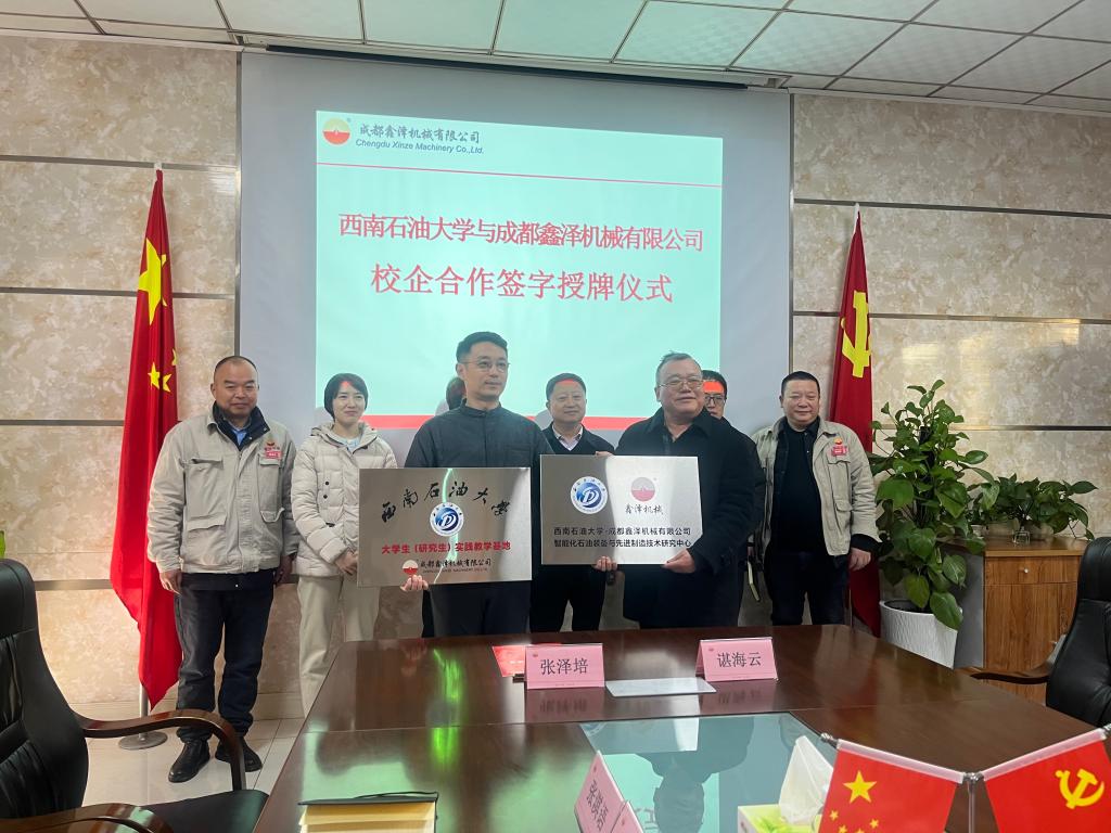 谌海云、张泽培分别代表校企双方签订了合作协议,向对方授予了“人才培养与技术支持基地”“大学生(研究生)实践教学基地”和“智能化石油装备设计与先进制造技术研究中心”牌。