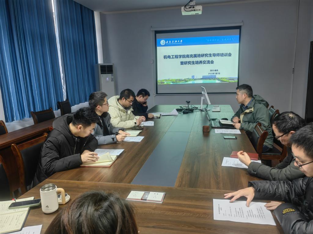 为保障机电工程学院在南充校区的研究生招生、人才培养、后勤保障等相关工作的高质量开展。近日,机电工程学院在完井楼101会议室举办硕博士导师研究生培养交流会。机电工程学院副院长蔡灿、机电工程学院南充属地全体硕博士生导师参会。