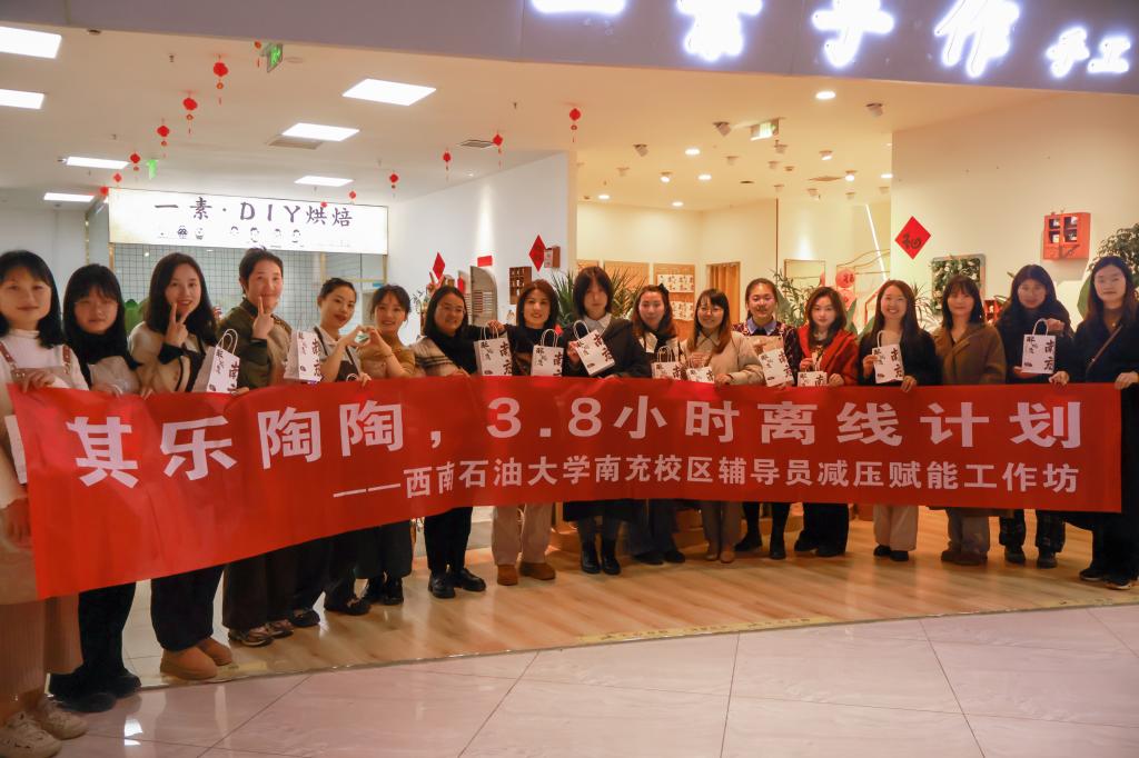 为加强对辅导员的人文关怀,帮助她们缓解工作压力、提升自我认知,增强团队凝聚力,3月7日下午,学生发展部(团委)和校区工会联合举办了“其乐陶陶,3.8小时离线计划”辅导员减压赋能工作坊,校区全体女性辅导员参加此次活动。