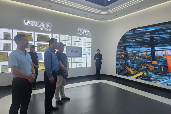 会后,谌贵辉一行深入企业智能化生产一线,参观了企业展厅、文化墙及生产车间,详细了解公司发展历程、核心产品及生产工艺,实地考察了国内领先的钢箱体全自动焊接生产线、纳米级表面处理车间及数字化管理中枢,对企业的智能化制造水平与精益管理模式给予高度评价。