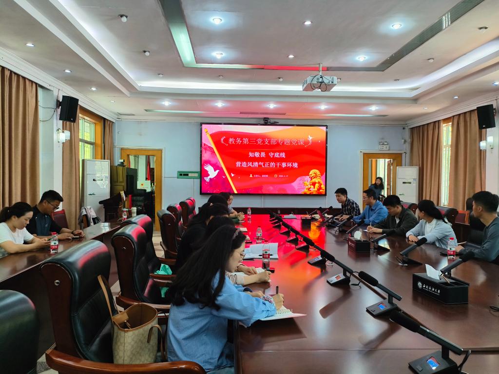 4月17日上午,南充校区副校长谌贵辉为教务部第三党支部全体党员讲授专题党课。本次党课以《知敬畏、守底线,营造风清气正的干事环境》为主题,围绕全面从严治党新要求,通过理论阐释、案例剖析与实践指导相结合的方式,为党员上了一堂深刻的思想教育课。