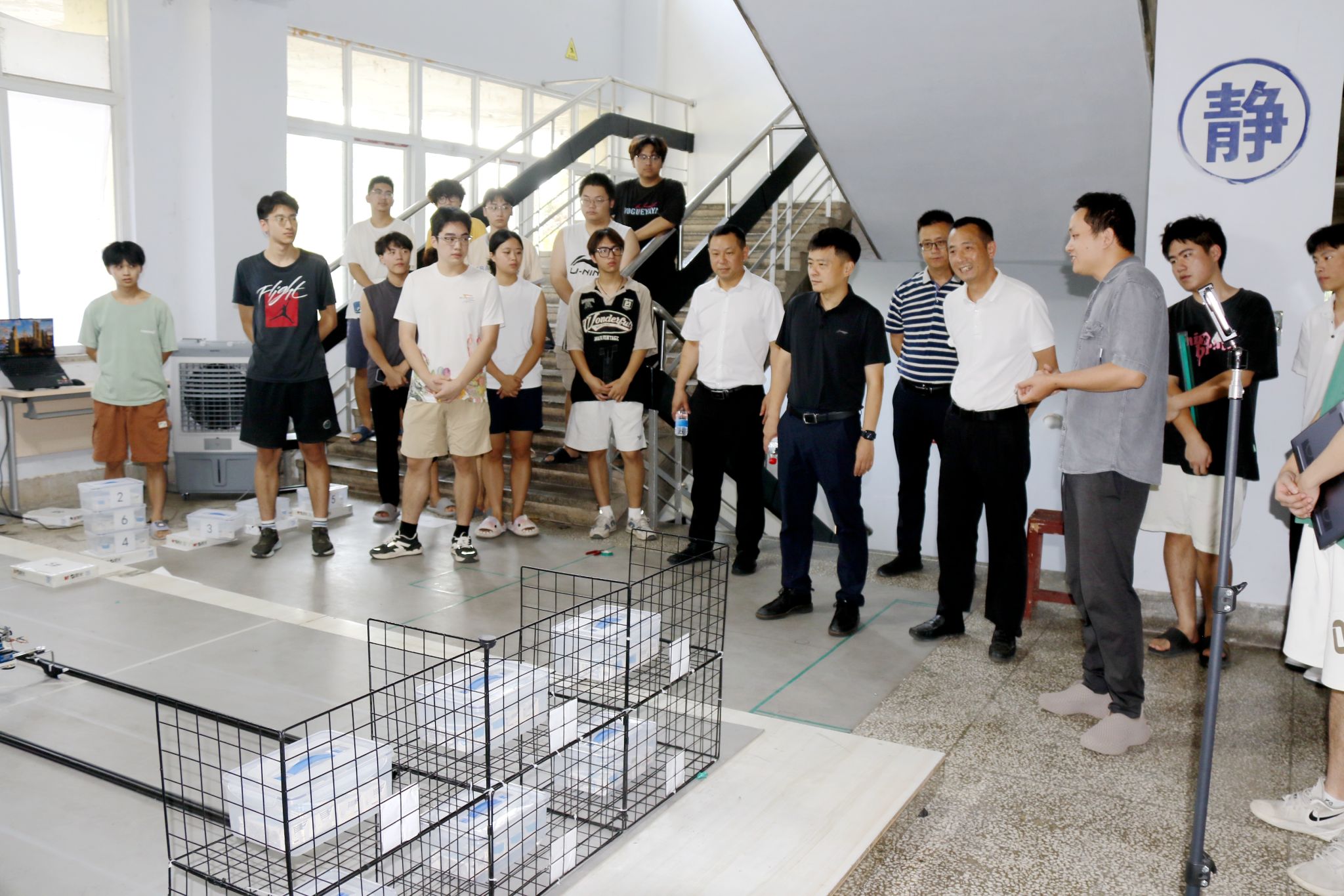 这些优异成绩的取得,离不开学校的顶层设计与领导的深切关怀。7月30日上午,校党委常委、副校长周莹在校区领导覃鸿飞、李平的陪同下,深入竞赛训练场地,代表学校看望慰问暑期留校备赛的师生。校领导一行仔细察看了训练设施配置、备赛资料整理及学生阶段性成果展示,详细了解了不同竞赛项目的场地保障与环境优化情况,并认真听取了指导教师关于备赛方案、训练进度、赛事难点的汇报,与参赛学生面对面交流,详细询问备赛过程中遇到的技术瓶颈与生活需求,肯定了师生们“不畏酷暑、攻坚克难”的奋斗精神。