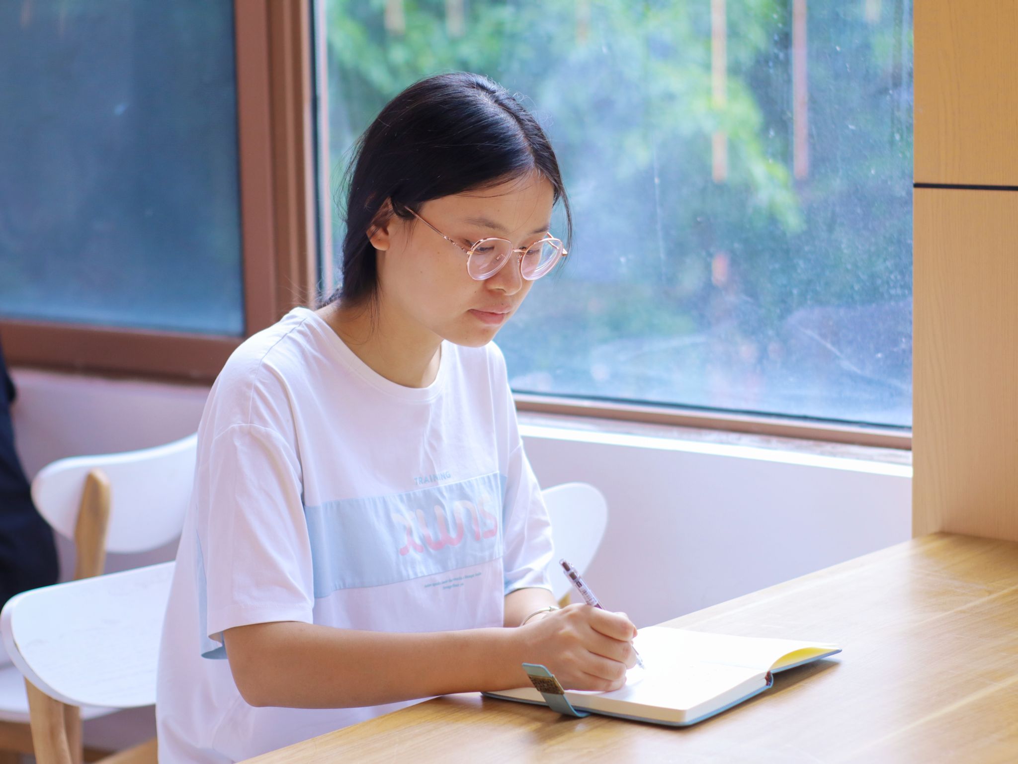 除了山歌,书法也是她生活中不可或缺的一部分。爷爷是书法爱好者,常为邻里写春联、题字。“爷爷写楷书,我给他研墨。他总说:‘字如其人,要写得端正。’”梁艺楠从小耳濡目染,也练就了一手好字。“其实高中阶段课业紧,我许久没碰毛笔,字写得歪歪扭扭的。”她自嘲地笑了笑,“但爷爷说,坚持比天赋更重要,一天不练手法都会生疏。”她认为,这和学校的校训颇有相通之处——踏实和坚持。