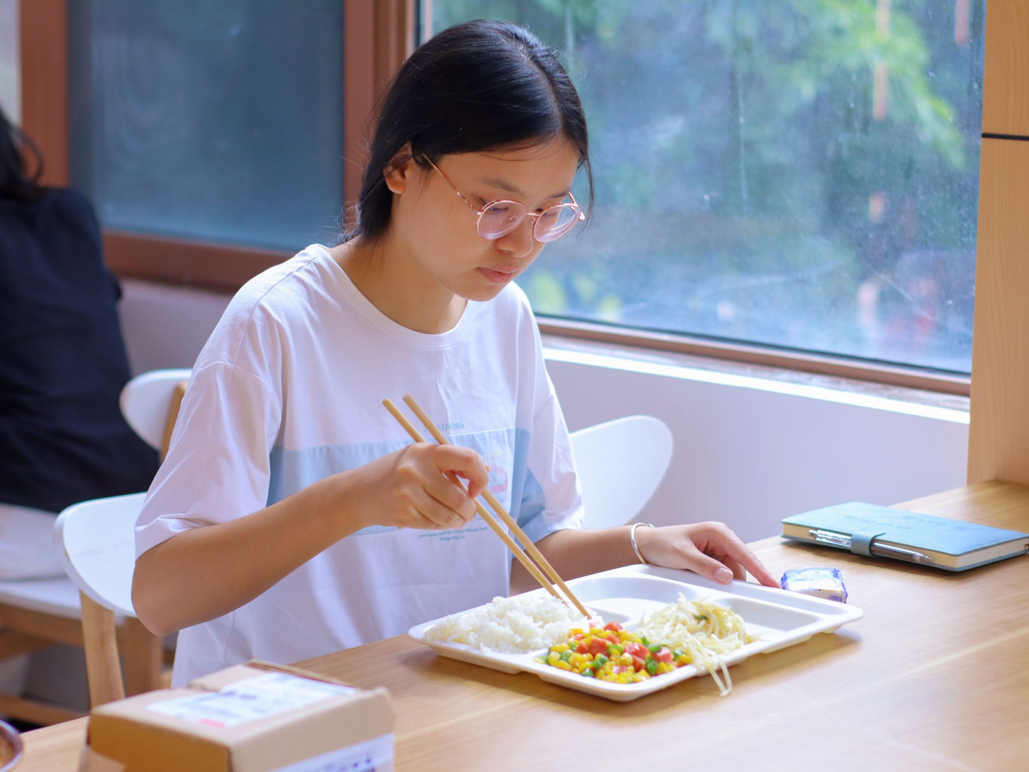 就餐时间,梁艺楠在食堂用餐,还给母亲一起视频。她夹起一块辣子鸡,皱眉又放下:“四川菜好辣啊!”电话那头的母亲笑着说:“吃不惯就慢慢适应,实在想念家乡菜的时候,可以去校外尝尝,或者等假期回家妈妈给你做。”