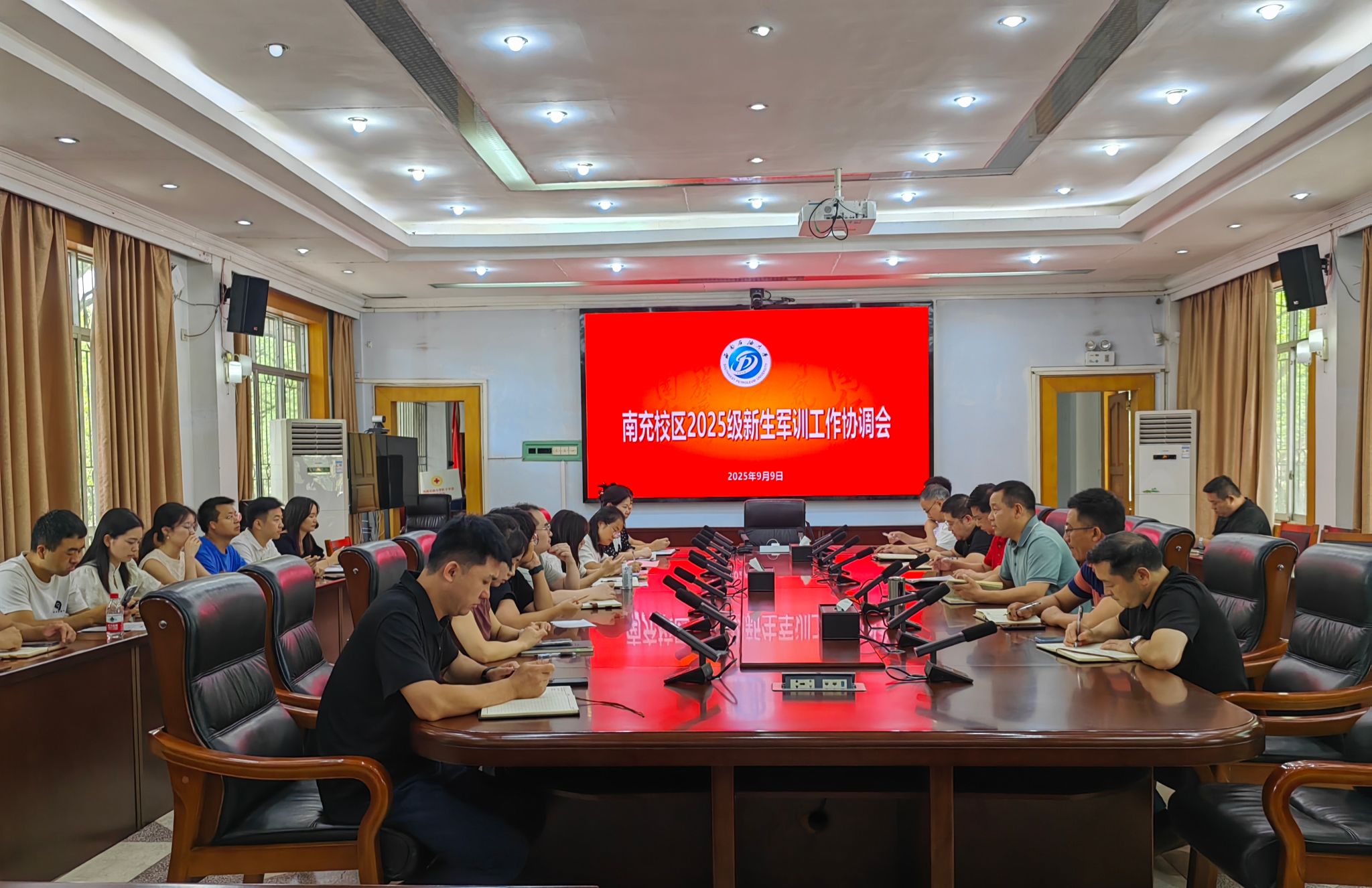 9月9日,南充校区召开2025级新生军训工作协调会。南充校区党委副书记郝江岭,南充校区副校长李平出席会议并讲话。校区各职能部门代表、学院学生办公室(团总支)负责人、新生辅导员等军训相关工作人员参加会议。