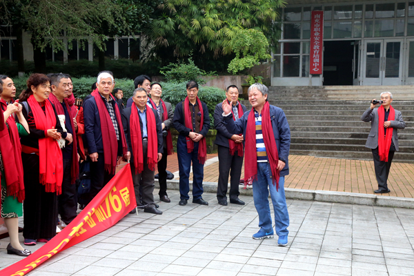 矿机76级班长刘汉章说,毕业近四十载,在南充校区学习生活的美好记忆仍旧历历在目,永远难忘。感谢母校的培育之恩,感谢老师的教导之情。今天返回母校,重逢龙井湖畔,心里十分激动,南充校区的发展变化让我们感到震撼,南充校区的一草一木让我们内心十分激动。值此母校六十周年校庆之际,我们捐赠一幅自己创作的国画,以此表达我们对母校的美好祝愿,希望南充校区建设得越来越好。