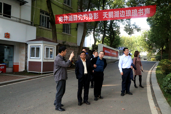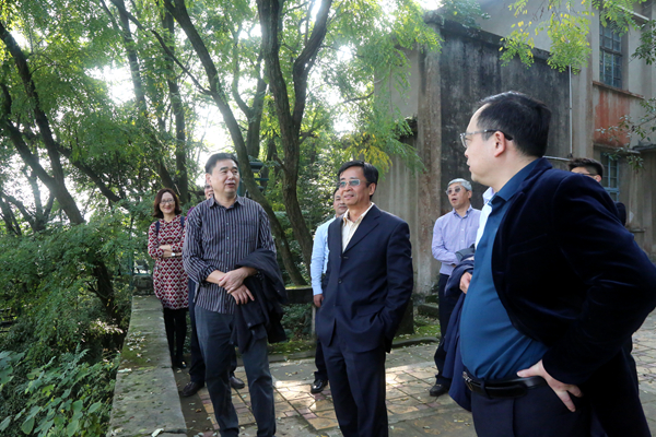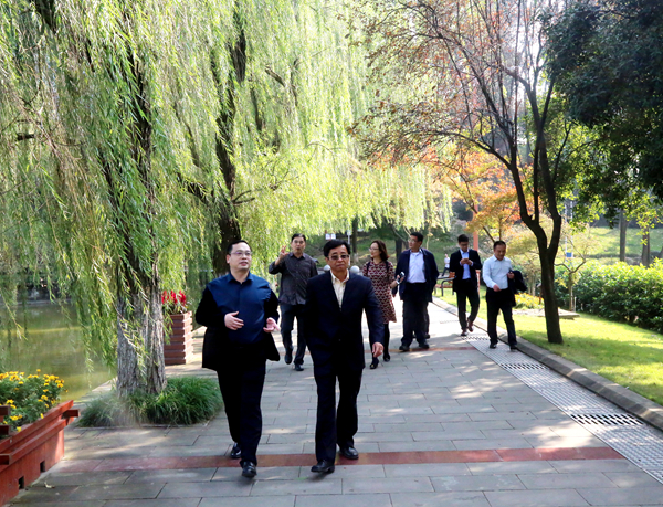 陈壁一行在张文卫等同志陪同下参观校园景观