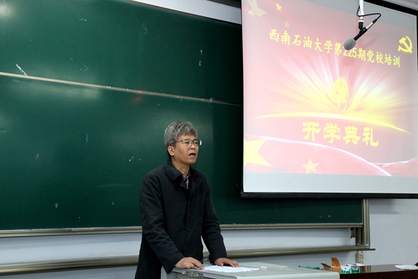 11月15日下午,学校党校第225期入党积极分子培训班开学典礼在第四教学楼4308教室举行。校长助理、南充校区常务副校长赵刚参加开班典礼并讲话。南充校区基础教学部马克思主义教研室主任李华峰,各学院学生党支部指导老师杨智光、周欣欣、刘新晖应邀参加了典礼。典礼由南充校区党群工作部(工会)副部长陈万林主持。