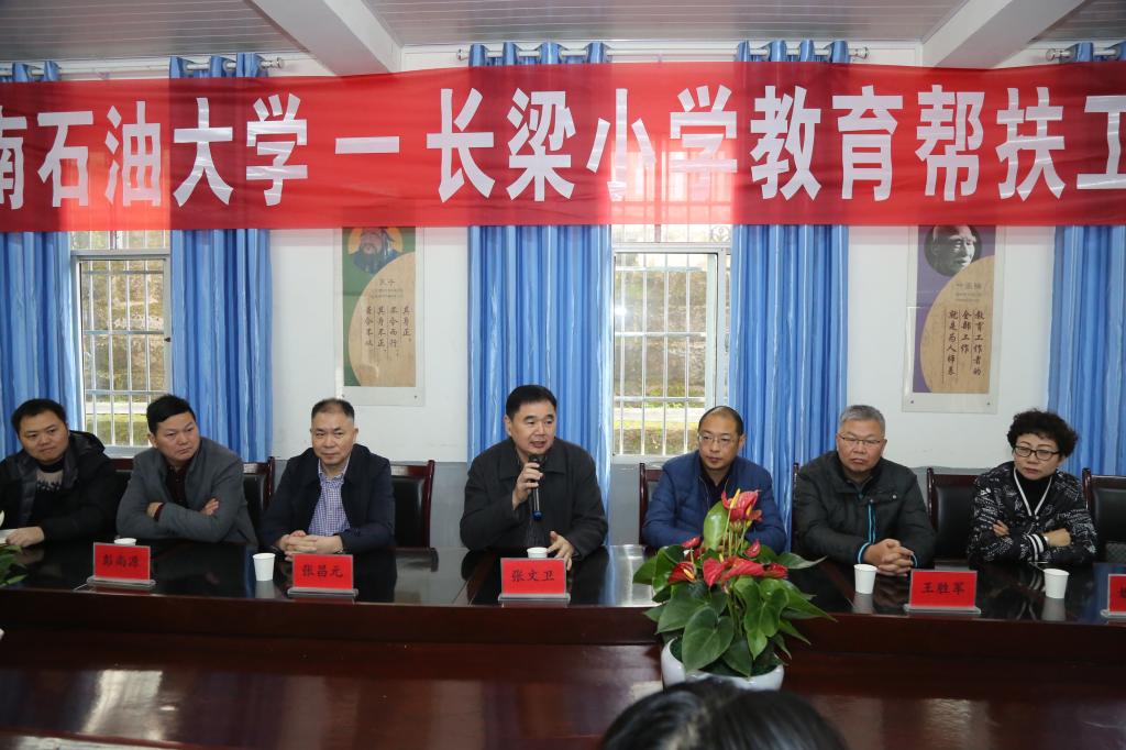 张文卫鼓励小朋友们勤奋学习,用知识改变命运,同时向奋战在农村基础教育一线的老师们表示敬意。张文卫表示培养社会主义合格建设者和接班人是我们西南石油大学和长梁小学的共同目标,教育扶贫是斩断贫困代际传递的有效措施,接下来西南石油大学会进一步加大对长梁小学的帮扶力度,除改善基本教学条件外,还会鼓励西南石油大学广大教师及学生社团加入到帮扶行列来。