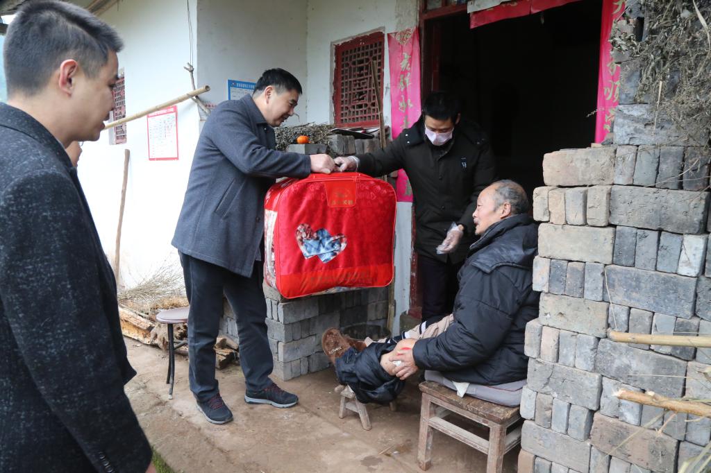 张文卫来到因病致贫的兰乾银家中,详细询问生活情况、下肢疾病治疗情况等,对他勤劳自立、克服困难、不等不靠的精神进行赞赏,鼓励他树立信心,战胜困难,渡过难关并赠送了毛毯等慰问物资。