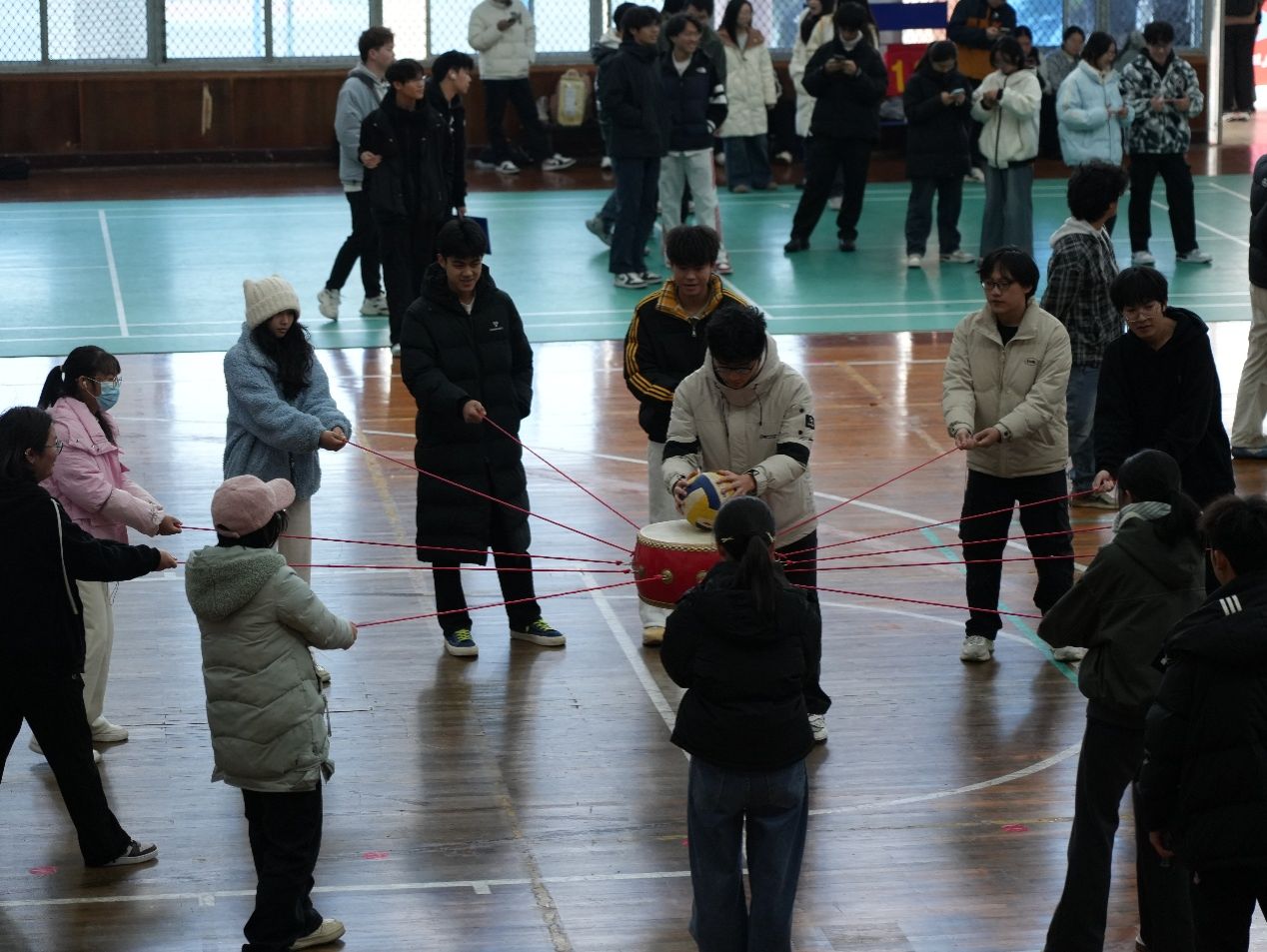 12月4日,学生同心鼓比赛在体育馆顺利举行。每队12人共擎一鼓,通过绳缆协作颠球,在2分钟内挑战协作极限。随着裁判员的哨声响起,排球轻触鼓底,随即在整齐的发力中跃于空中。队伍屏息凝神,每一次精准触碰与弹跳,皆是无声的交流与默契。赛前队员们互相鼓气,场外观众的加油呐喊与赛后响起的真挚而热烈的掌声共同交织成青春的生动图景。经过激烈角逐,能源与环境系统工程专业代表队以133次的成绩斩获第一,焊接技术与工程专业代表队获得第二名,网络工程专业代表队获得第三名,材料化学专业代表队、电子信息科学与技术专业代表队并列第四,光电信息科学与工程专业代表队位列第六。赛后,来自2025级财务管理专业的田吉凯分享道:“这次活动特别有意义,不仅加深了同学之间的联系,还丰富了我们的课余生活,希望学校能多举办这类赛事。”