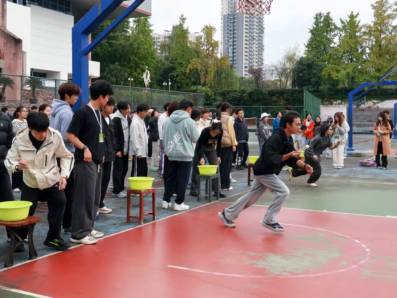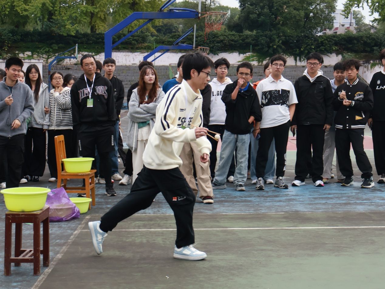 11月13日,南充校区成功举办了体育节分项赛事——筷子夹乒乓球接力赛,来自十五个专业代表队的一百五十名学生参加了此次比赛。裁判一声令下,选手们迅速将筷子探入盆中,小心翼翼地夹起乒乓球,大步流星地朝终点奔去。在确保乒乓球精准落入另一盆中后,又飞快跑回起点。有的选手手法娴熟,步步轻盈,乒乓球稳稳夹于筷间,纹丝未动,引得现场观众阵阵喝彩;而部分选手略显紧张,乒乓球屡次失控掉落,但他们并未气馁放弃,而是迅速调整状态重新挑战。最终,光电信息科学与工程专业代表队以3分09秒的成绩摘得桂冠,材料化学专业代表队、电子信息科学与技术专业代表队分获亚军、季军。