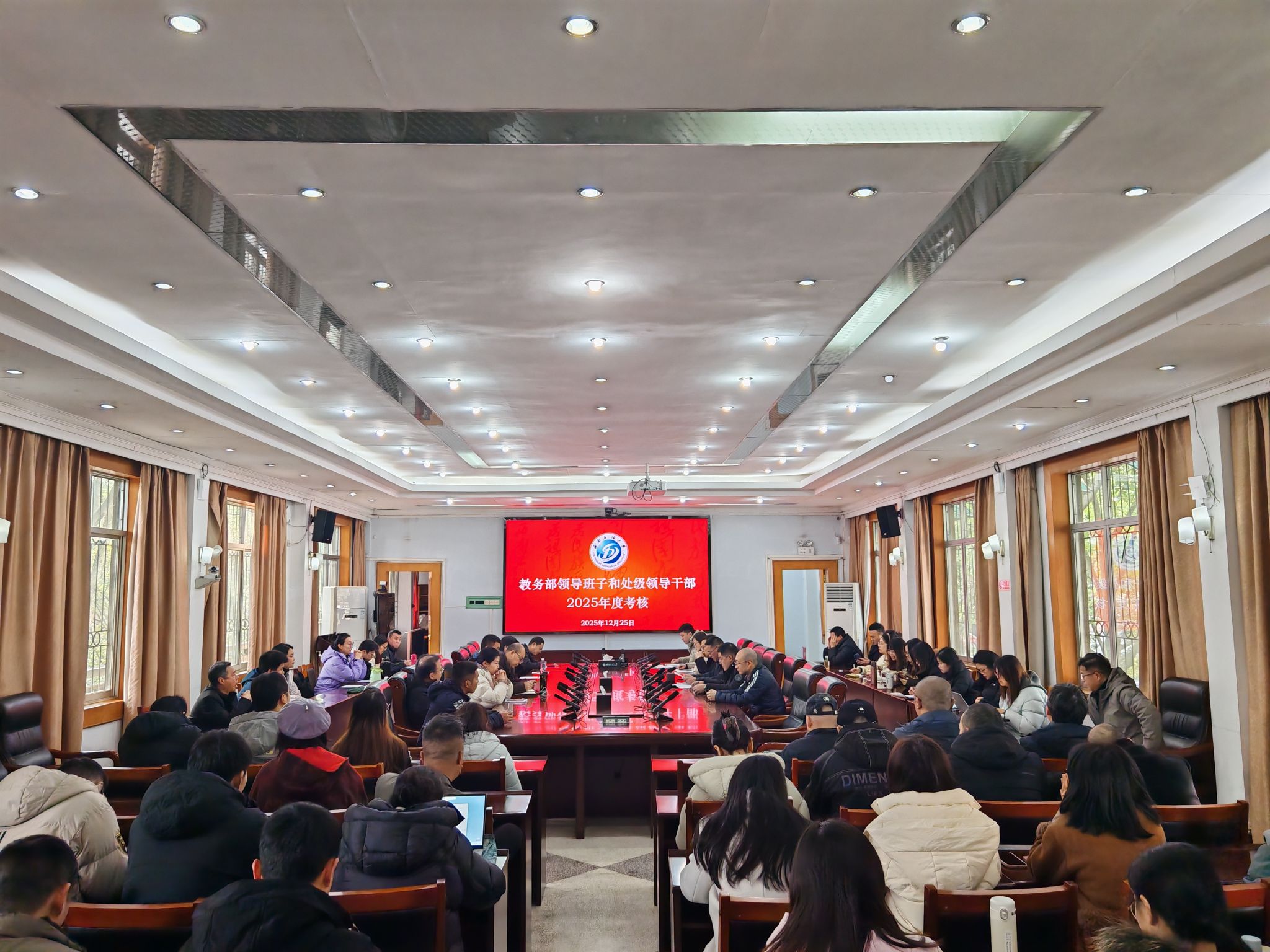 12月25日,教务部举行领导班子及处级干部年度考核述职评议会。会议由南充校区副校长谌贵辉主持,教务部全体教职工参加会议。