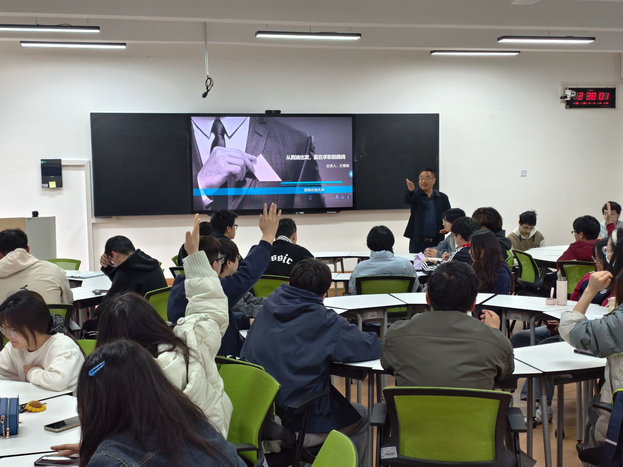本次活动特邀南充市顺庆区就业服务管理局原局长、四川省王又冬线上职业生涯指导大师工作室首席专家王煜桢担任主讲人。王煜桢结合当前高校毕业生的就业现状,从简历优化、经验提炼、面试解析、叙事策略等板块入手,为现场学子带来了一堂兼具实用性与前瞻性的求职能力提升课程,并通过互动答疑与案例分析进行了深入讲解。活动现场气氛活跃、互动积极,同学们一致表示“干货满满、收获颇丰”“对求职有了更明确的方向感”。