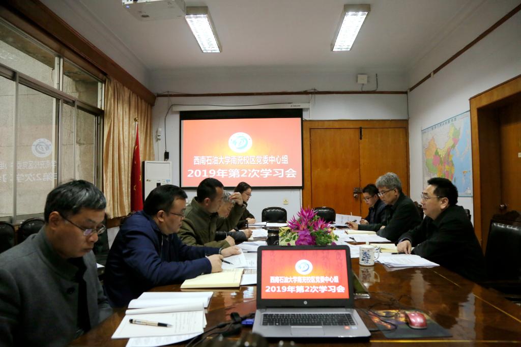 3月12日,南充校区党委中心组举行2019年第2次专题学习会。校长助理、南充校区党委常务副书记张光君主持会议,校区领导赵刚、覃鸿飞、王胜军、谌海云,校区党政办公室、党群工作部(工会)负责同志参加会议。
