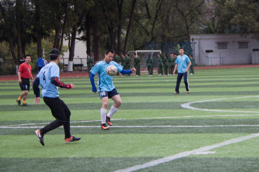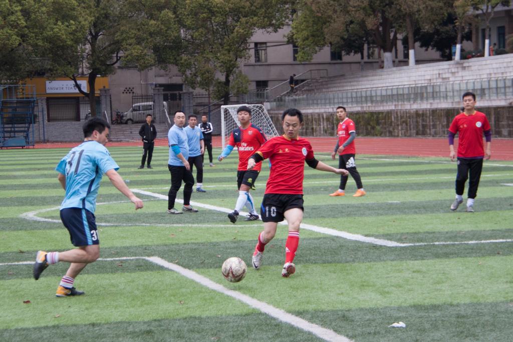 一声哨响,比赛正式开始,赵刚为比赛开球。双方球员迅速进入状态,你争我抢,毫不相让。第一节比赛刚开始,成都校区教职工队教工队凭借着默契的配合、快速的传切,率先射门,但被南充校区教职工队守门员及时扑救。双方球员激情高涨,比赛进行得异常激烈。大家积极拼抢,用巧妙的短传配合多次试图打穿对方防线,但势均力敌,第一节比赛打平。赛间休息时间,两队及时总结不足,商讨下一阶段战术。比赛第二节,双方队员进行了新一轮的攻守配合。每一位队员的激情丝毫不减,在场上奋力拼抢,来回传球,场上形势越来越胶着。一次次漂亮的穿插、一个个巧妙的助攻、一次次奋力的扑救、一次次漂亮的射门,比赛场上高潮迭起,观众连连欢呼叫好。第二节比赛结束时,双方比分为3:0,成都校区教职工足协拿下3分。最后一节比赛,南充校区教职工足协队员调整心态,奋起直追,力争射门得分。成都校区教职工足协再进一球,最终以4:0获得胜利。