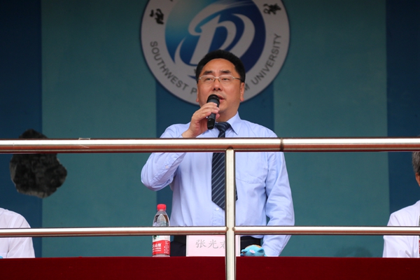 张光君宣布西南石油大学第四十三届田径运动会(南充赛区)开幕