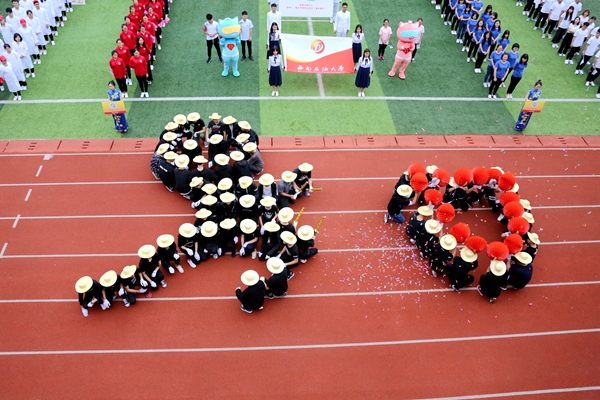 各专业方队表演精彩,他们巧妙地变换队形,别具匠心,展示了专业特色,既表达了对祖国70华诞的祝福,也展现了南充校区学子积极进取、朝气蓬勃的精神风貌。