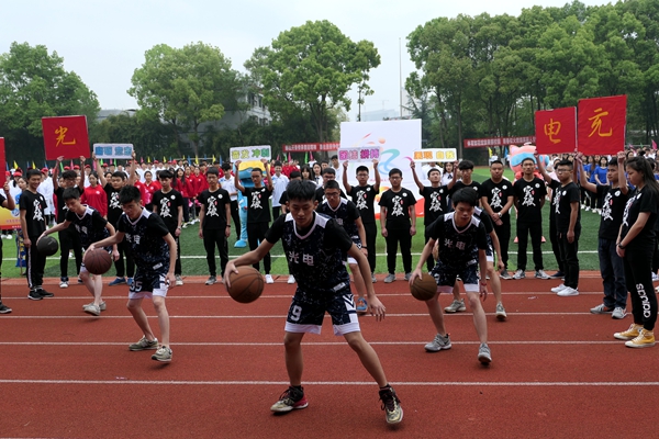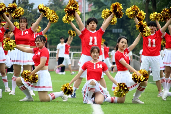 基础教学部精心编排的大型综合体育表演节目《炫动青春》,由跆拳道、羽毛球、花样跳绳和大型啦啦操表演四个体育专项组成,场面宏大,催人奋进。跆拳道表演刚柔结合,舒展豪放,印有脸谱的旗帜连成排,独具特色。手持红色羽毛球拍的同学们跟着节拍律动,活力四射。花样跳绳的同学们动作娴熟,是力与美的结合。大型啦啦操表演的同学手举色彩绚丽的花球,伴着欢快的节奏,将每一个音符跳出青春的活力,训练有素、编排创新,舞蹈动作饱含感染力,现场喝彩鼓掌声此起彼伏。