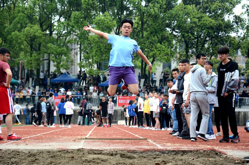 捷豹似的助跑,飞燕似的起跳,落地瞬间飞扬的不仅是尘沙,还有跳远运动员们的坚定梦想。工程造价2017级的张敏获得女子组冠军。能源与环境系统工程专业2018级的吴佳诚夺得男子跳远冠军。他说:“很感谢同学们比赛前陪我训练,比赛时为我加油。我能取得这样的成绩离不开他们的支持。” 无数次的冲刺,无数次的摔倒,是坚持不懈的训练让他们能够在赛场上纵身一跃,跳出好成绩。